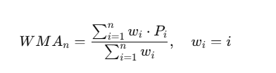 WMA (Weighted Moving Average) là đường trung bình có trọng số tuyến tính, trong đó phiên mới nhất có trọng số cao nhất, các phiên cũ giảm dần.