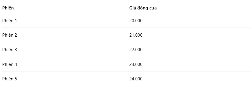 Để giúp nhà đầu tư dễ hình dung, khoahocchungkhoan.vn minh họa cách tính MA thông qua ví dụ giá đóng cửa cổ phiếu trong 5 phiên liên tiếp.